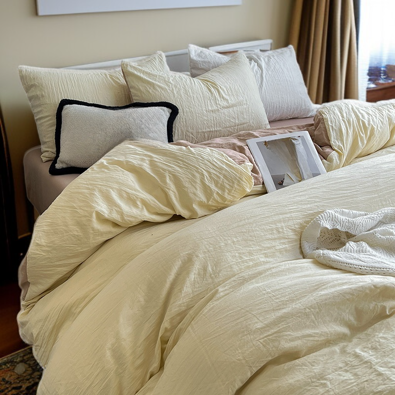 ● 프리미엄 워싱면 소재로 제작되어 피부에 자극 없이 부드러운 촉감과 쾌적한 숙면 환경을 제공합니다. ● 가을 무드의 세련된 순색 디자인으로 침실 분위기를 한층 더 고급스럽고 아늑하게 연출해줍니다. ● 이불 커버, 베개 커버, 침대 시트 3종 세트 구성으로 실용성과 경제성을 모두 만족시켜 드립니다. ● 내구성이 뛰어난 난퉁 홈패브릭으로 잦은 세탁에도 변형 없이 오랫동안 깔끔하게 사용할 수 있습니다. ● 알러지 방지 가공 처리로 민감한 피부를 가진 분들도 안심하고 사용할 수 있는 건강한 침구 세트입니다.